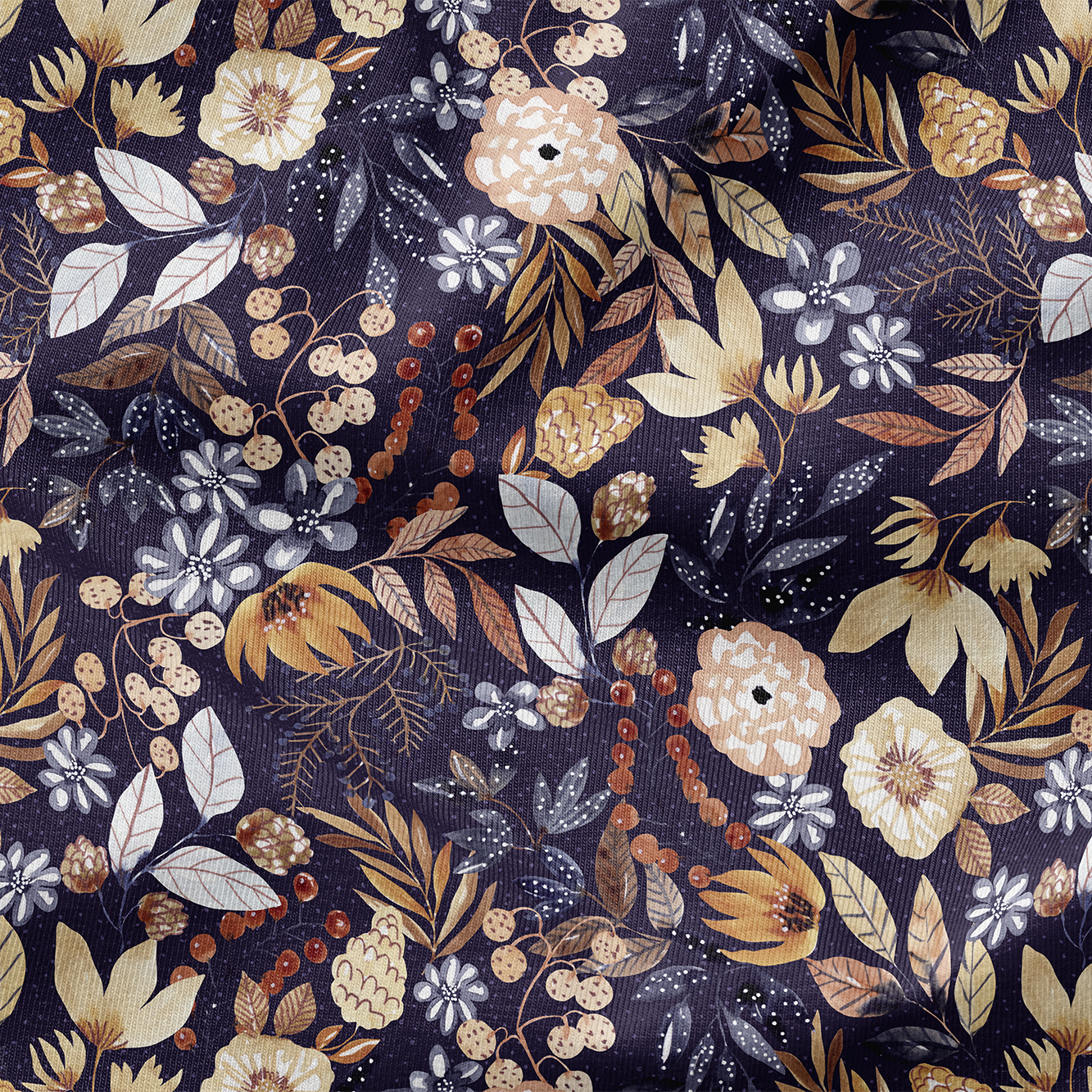 Fairtrade Biojersey Navy Flowers (GOTS)